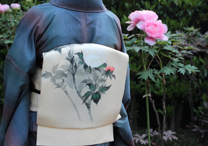 ちょうど訪れていた和服の女性の帯に牡丹が描かれていた。写真を撮らせてほしいと頼んだところ快く承諾してくださった。それではお礼に、と言おうとしたら牡丹が「おいおい止めておけよ」と。この牡丹は達磨大師の化身かと。やはり鏡であった。