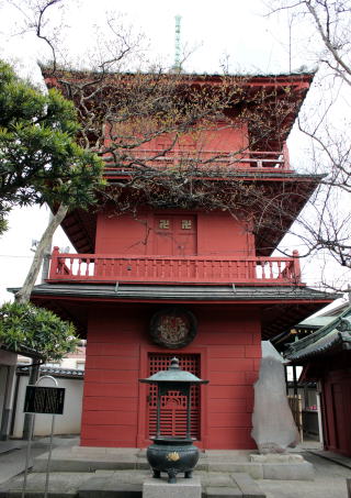 都内では唯一に。三層でここを一周すると諸国の霊場、諸仏を巡拝したのと同じご利益があるといわれ江戸時代に流行したという。明治17年に改築)