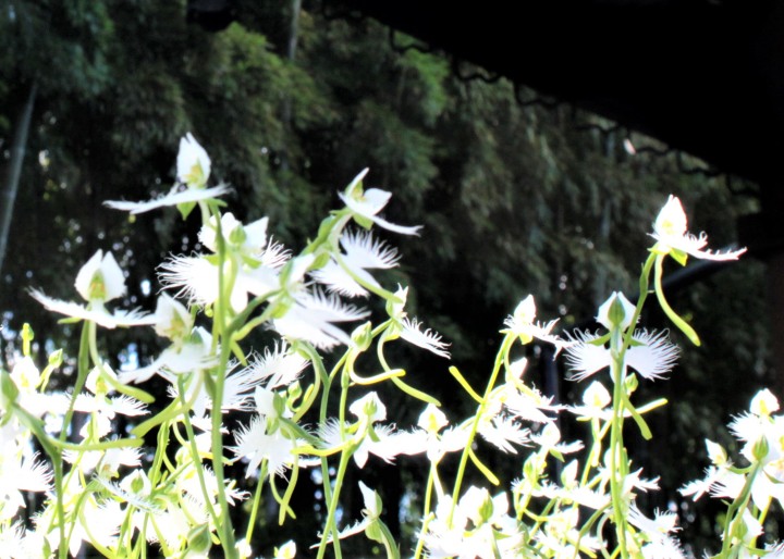 世田谷区の砧にある妙法寺のご住職が鷺草を育てているという話を聞いて訪れたのは2年前であった。今年炎天の下、出かけた。前に訪れたときに比べると花の数も少なくちょっと寂しい。時季が遅かったのかと。