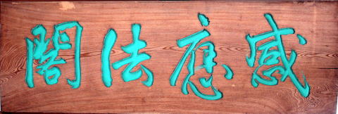 本堂扁額(「感応法閣」 茂田井教亨師書)