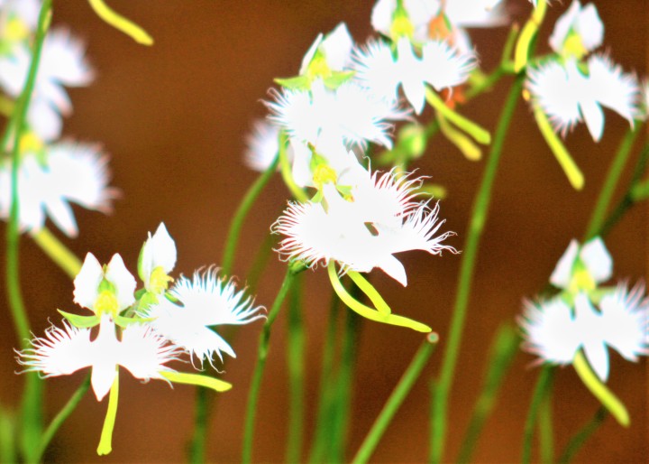 どなたの歌か定かでないが、鷺草に想う人を重ねて歌った恋歌。鷺草を見ているとなるほどとうなずく純白の美しさである。野生の鷺草は絶滅危惧種だそうだ。東京都は既に絶滅種にしている。
