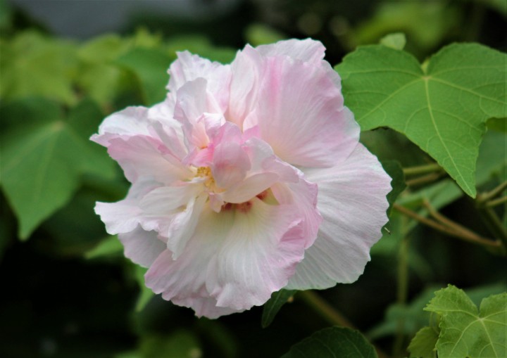 酔芙蓉は八重の花弁を持っているので、そのあたりで分かったふりをしている。