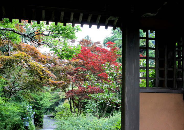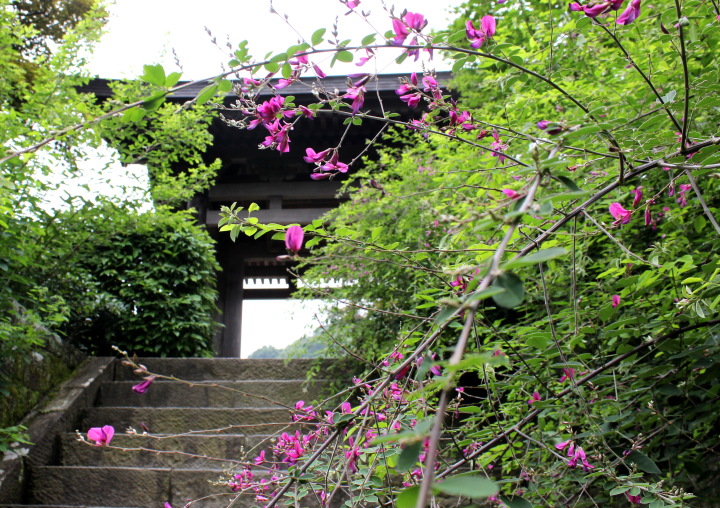 山門の脇門を潜ると正面にその玄関がある。玄関までの敷石の脇に早春であれば水仙が、初秋には桔梗が花を咲かせて玄関まで案内をしてくれる。